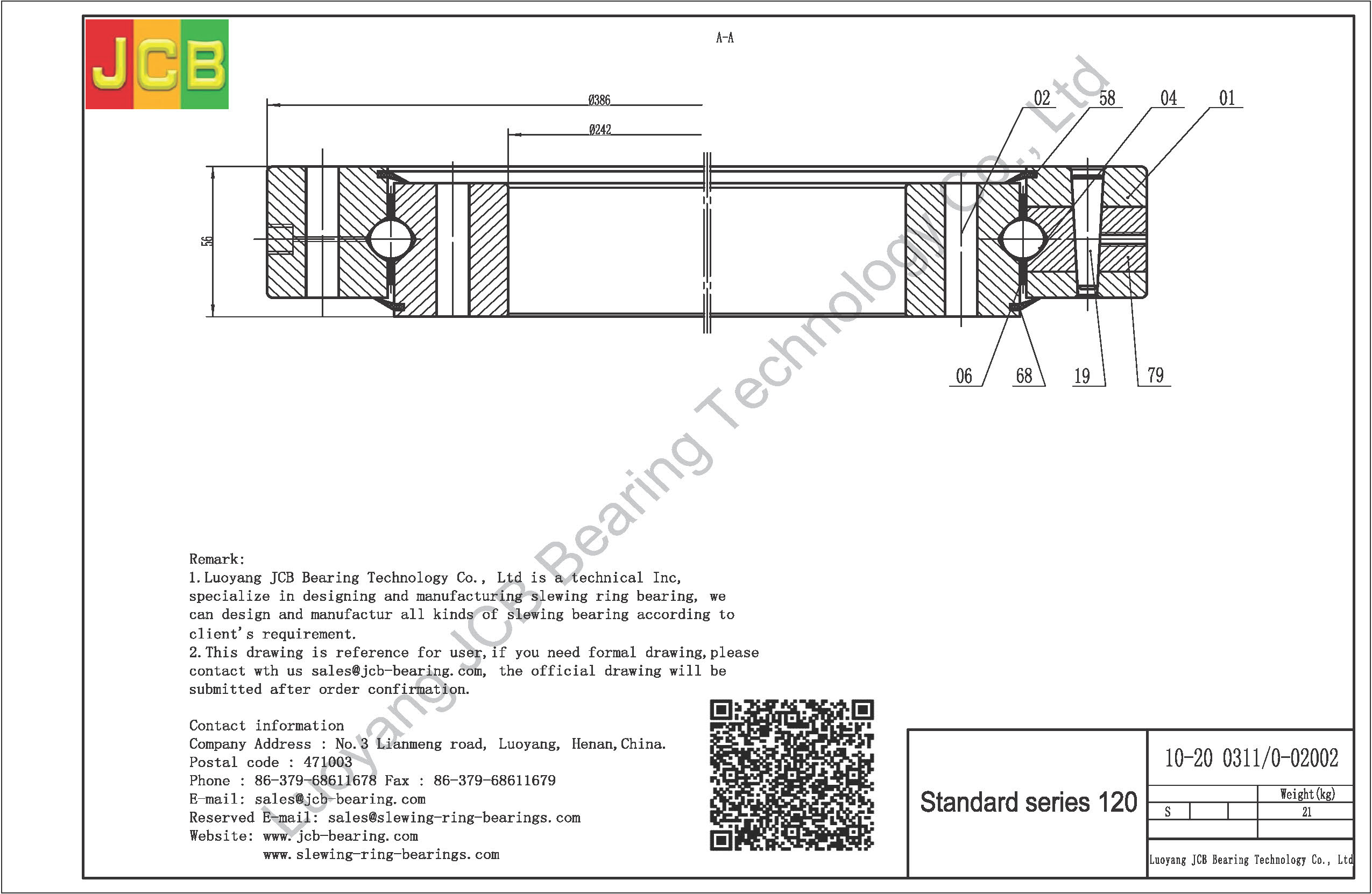 Introduction:We are Luoyang JCB Bearing Technology Company, working on industry of slewing ring bearing designing and manufacturing more than 30 years, based on this we accumulate a lot of design experiences and slewing ring bearing application experiences