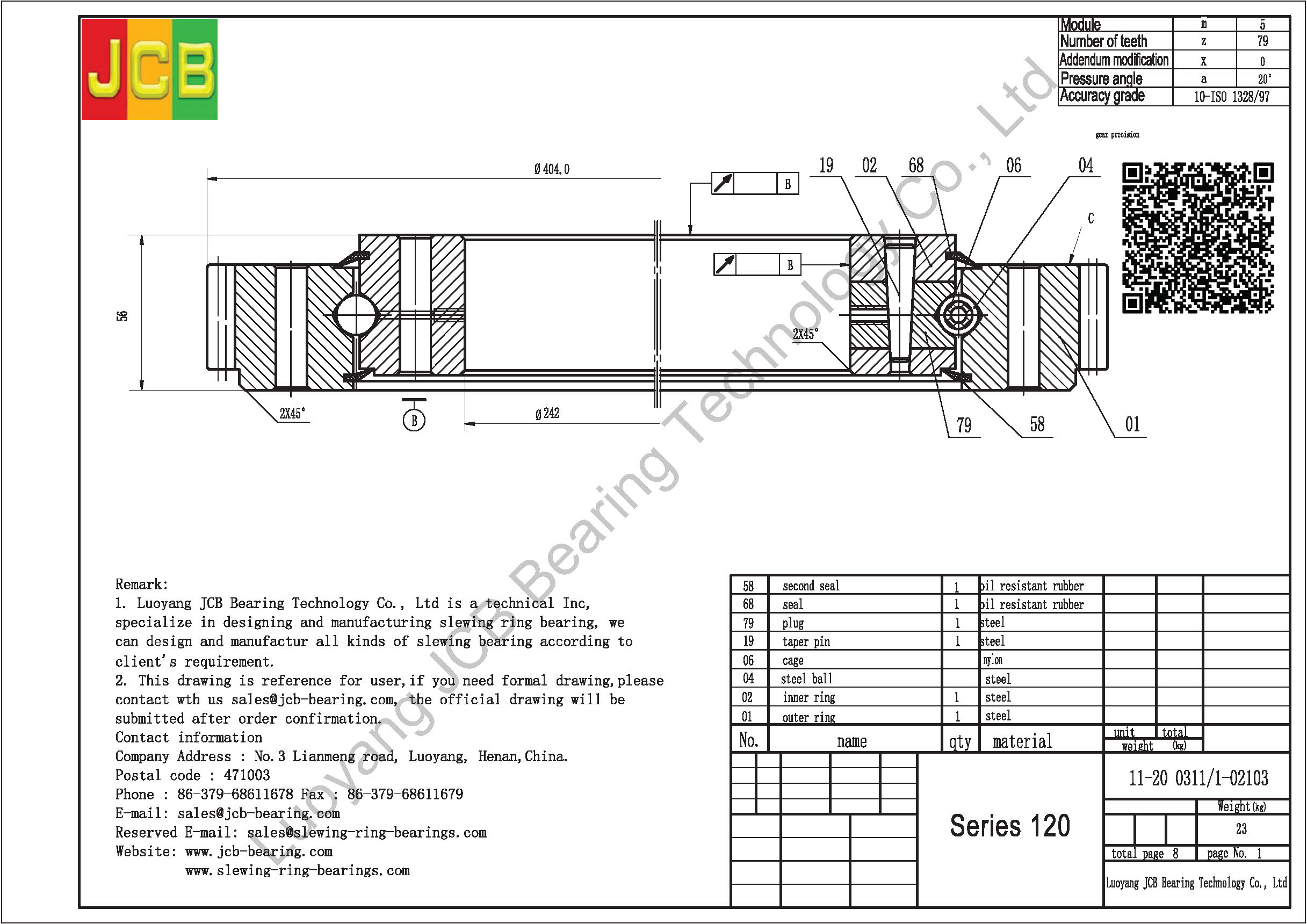 Introduction:We are Luoyang JCB Bearing Technology Company, working on industry of slewing ring bearing designing and manufacturing more than 30 years, based on this we accumulate a lot of design experiences and slewing ring bearing application experiences