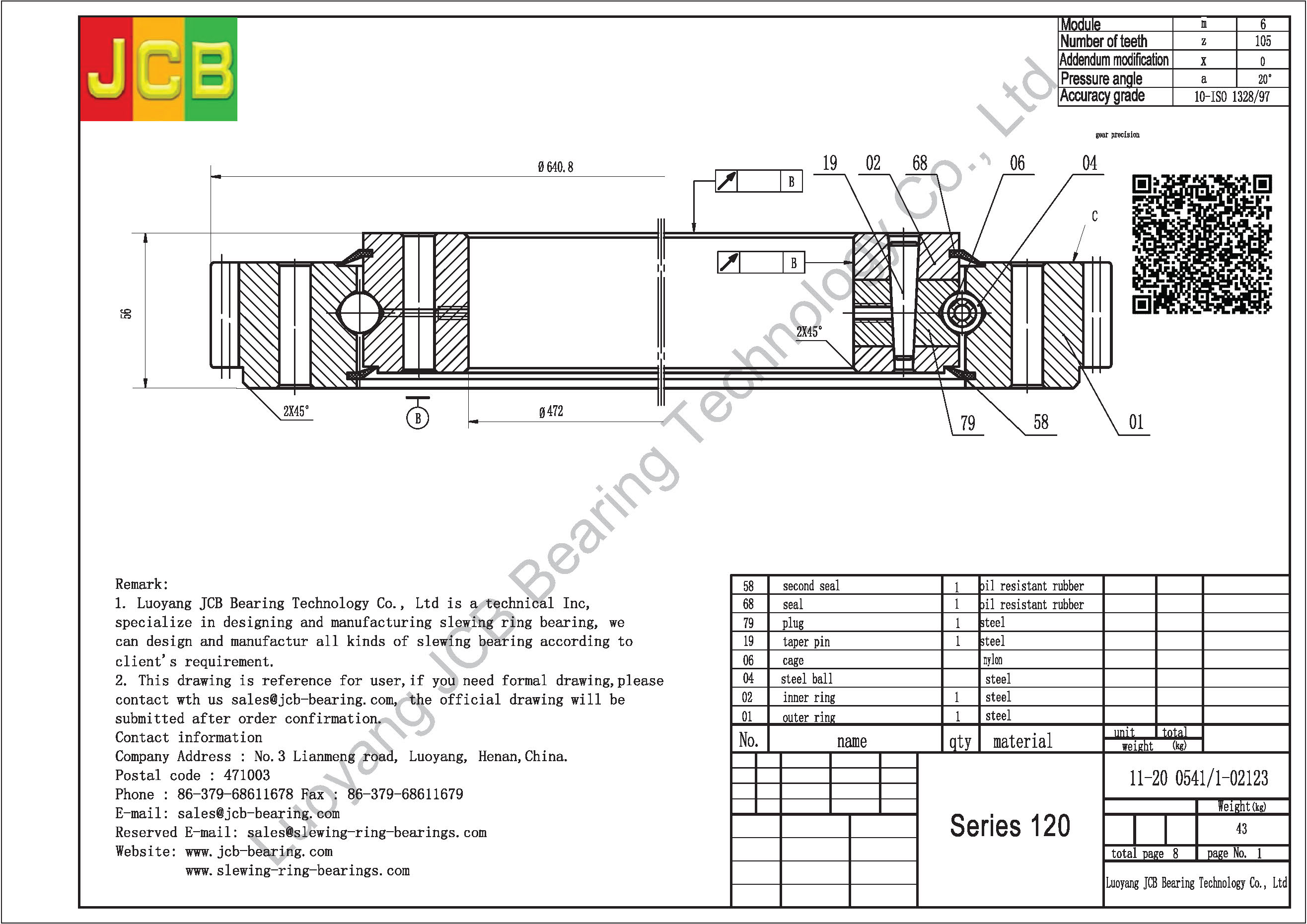 Introduction:We are Luoyang JCB Bearing Technology Company, working on industry of slewing ring bearing designing and manufacturing more than 30 years, based on this we accumulate a lot of design experiences and slewing ring bearing application experiences