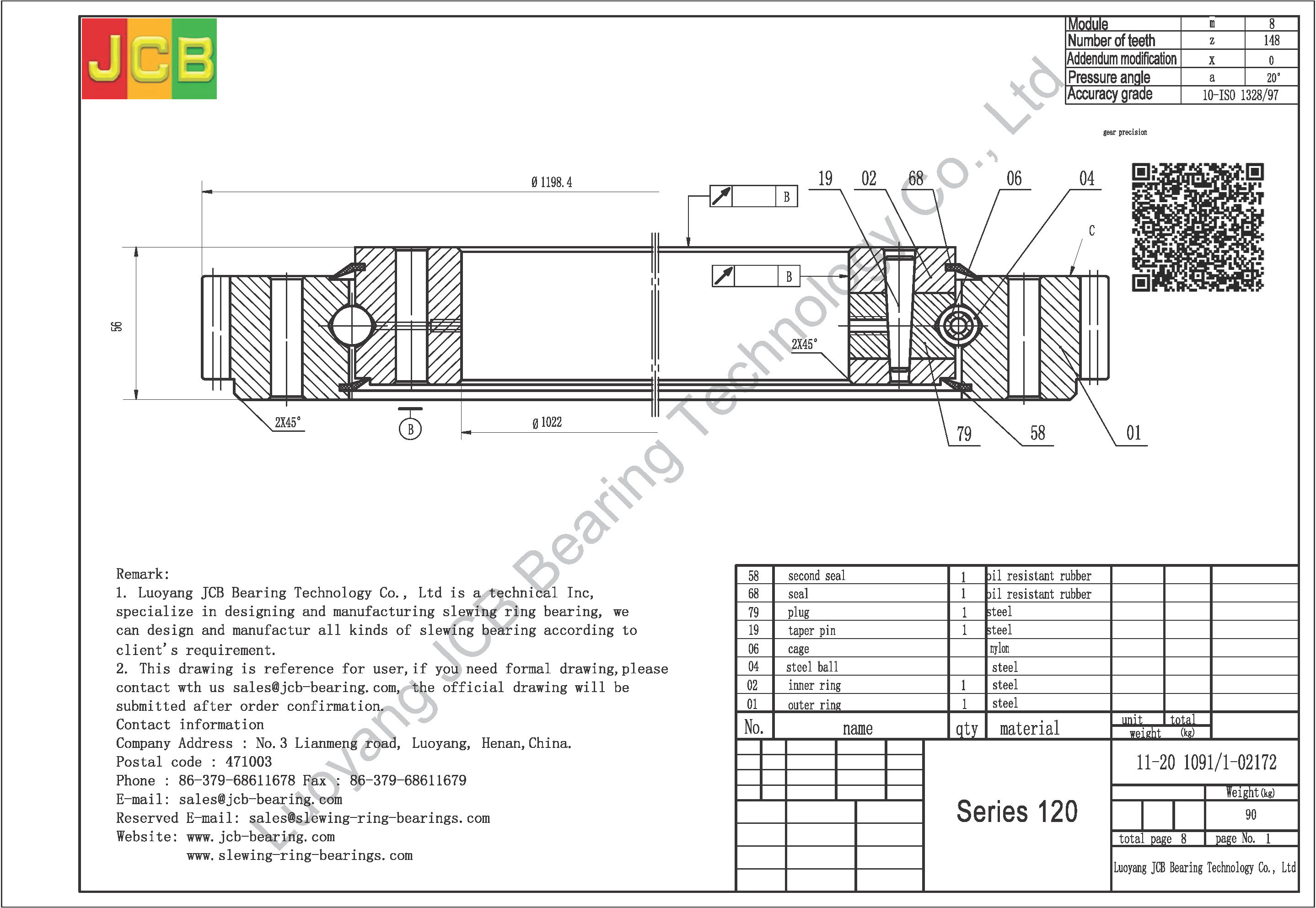 We are a professional manufacturer of slewing bearing 11-20 1091/1-02172 rather than sales company of slewing bearing 11-20 1091/1-02172. We not only provide high-quality products, but also provide customers with the most extensive pre-sales and after-sales services, as well as professional technical support.