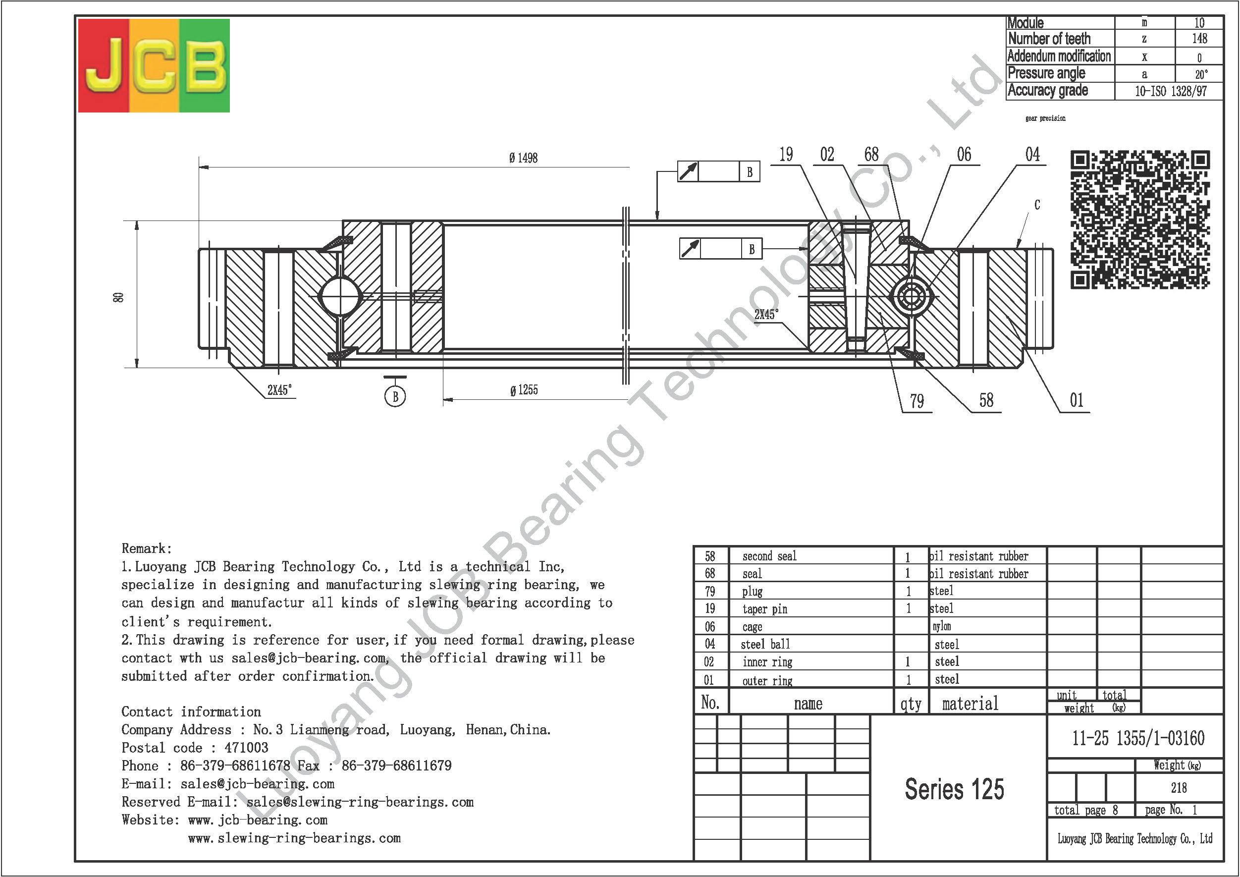 We are a professional manufacturer of slewing bearing 11-25 1355/1-03160 rather than sales company of slewing bearing 11-25 1355/1-03160. We not only provide high-quality products, but also provide customers with the most extensive pre-sales and after-sales services, as well as professional technical support.