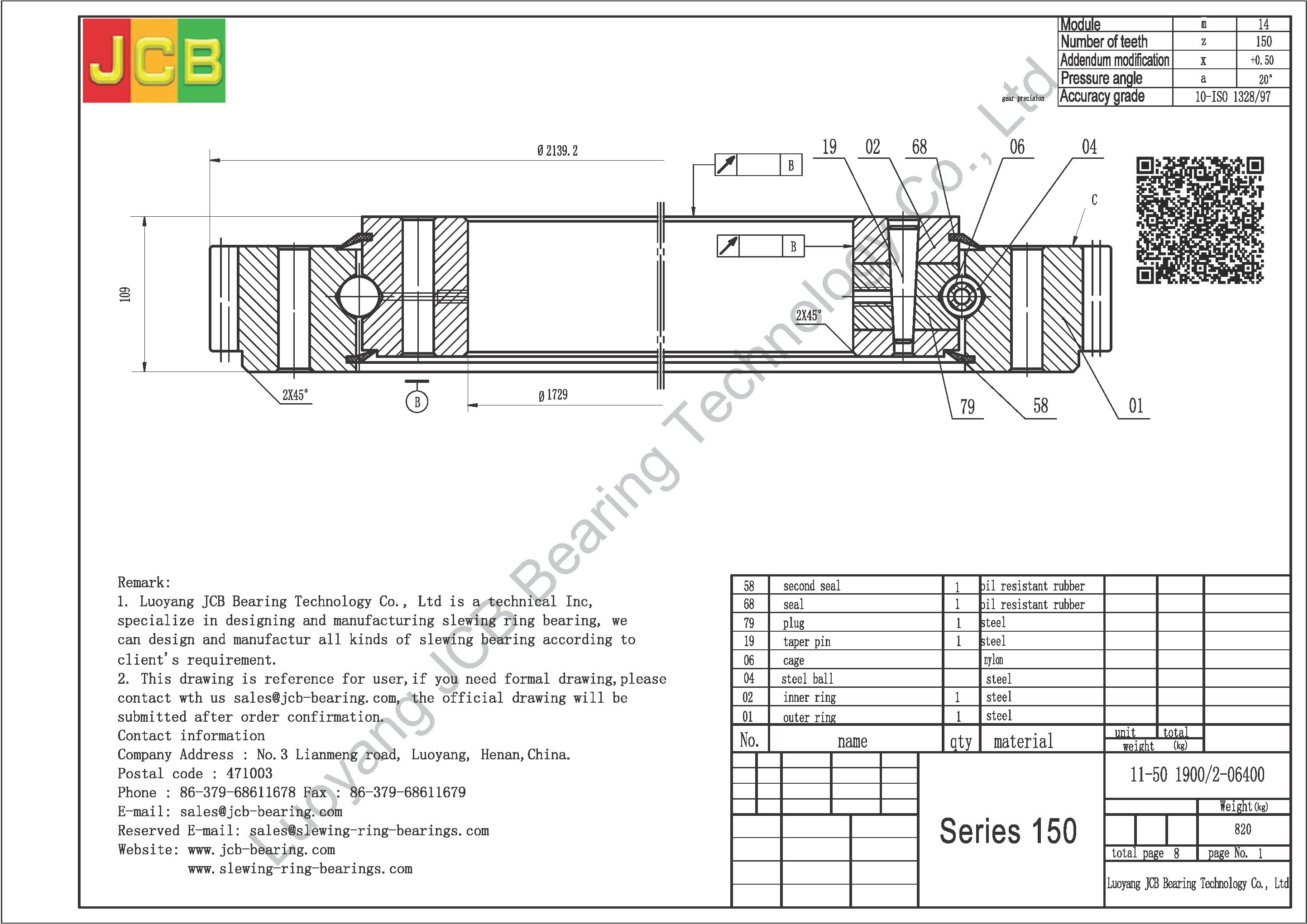 Introduction:We are Luoyang JCB Bearing Technology Company, working on industry of slewing ring bearing designing and manufacturing more than 30 years, based on this we accumulate a lot of design experiences and slewing ring bearing application experiences