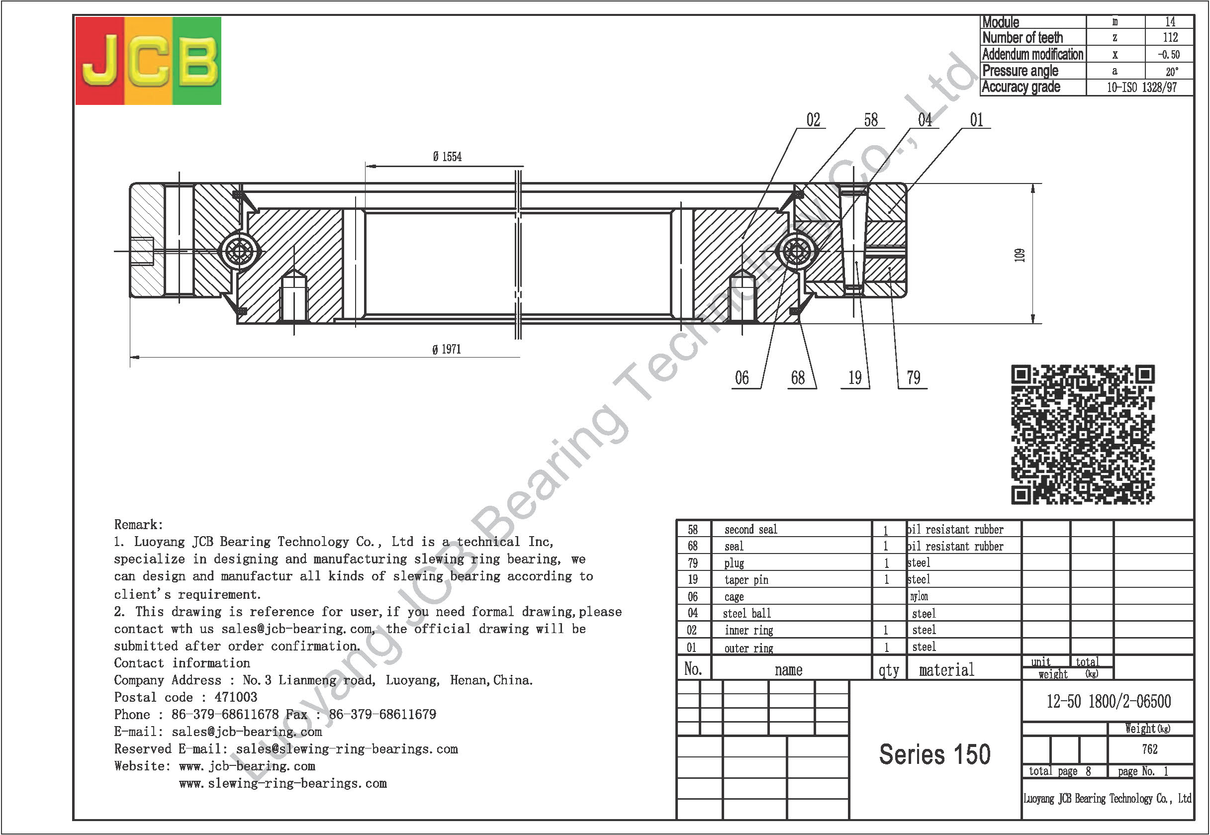 Introduction:We are Luoyang JCB Bearing Technology Company, working on industry of slewing ring bearing designing and manufacturing more than 30 years, based on this we accumulate a lot of design experiences and slewing ring bearing application experiences