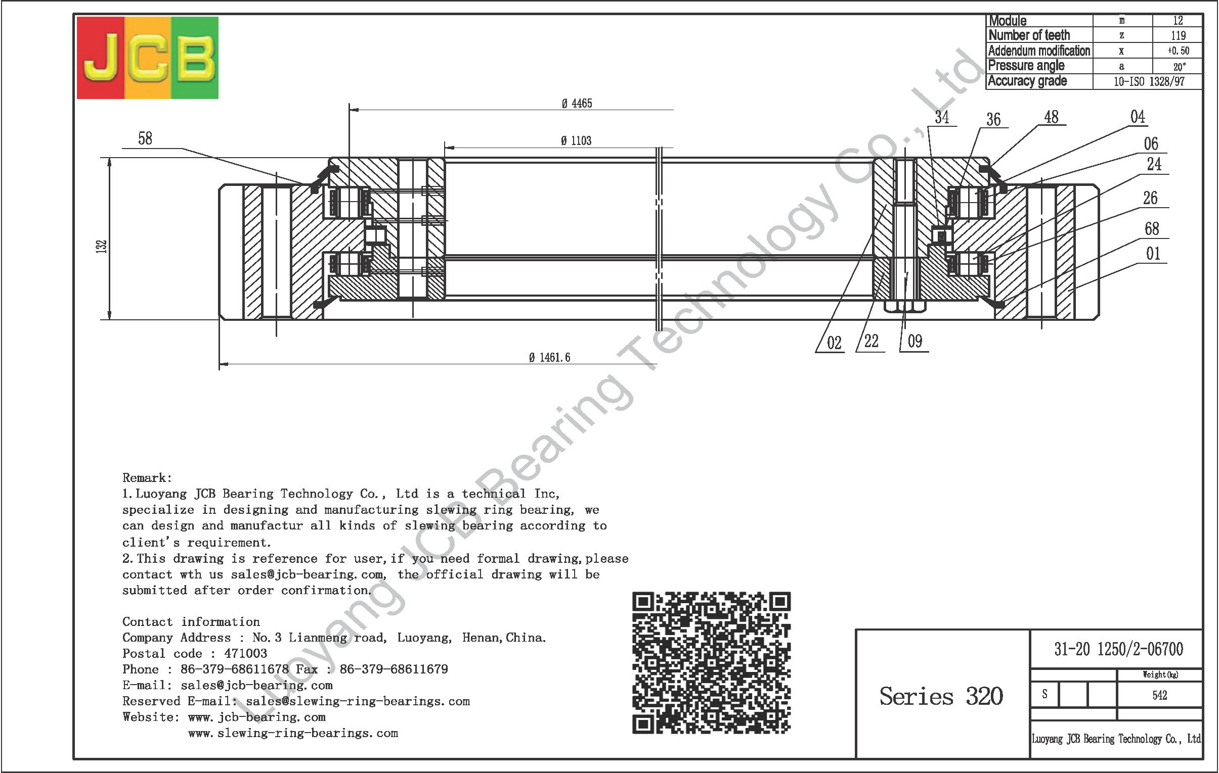 Introduction:We are Luoyang JCB Bearing Technology Company, working on industry of slewing ring bearing designing and manufacturing more than 30 years, based on this we accumulate a lot of design experiences and slewing ring bearing application experiences