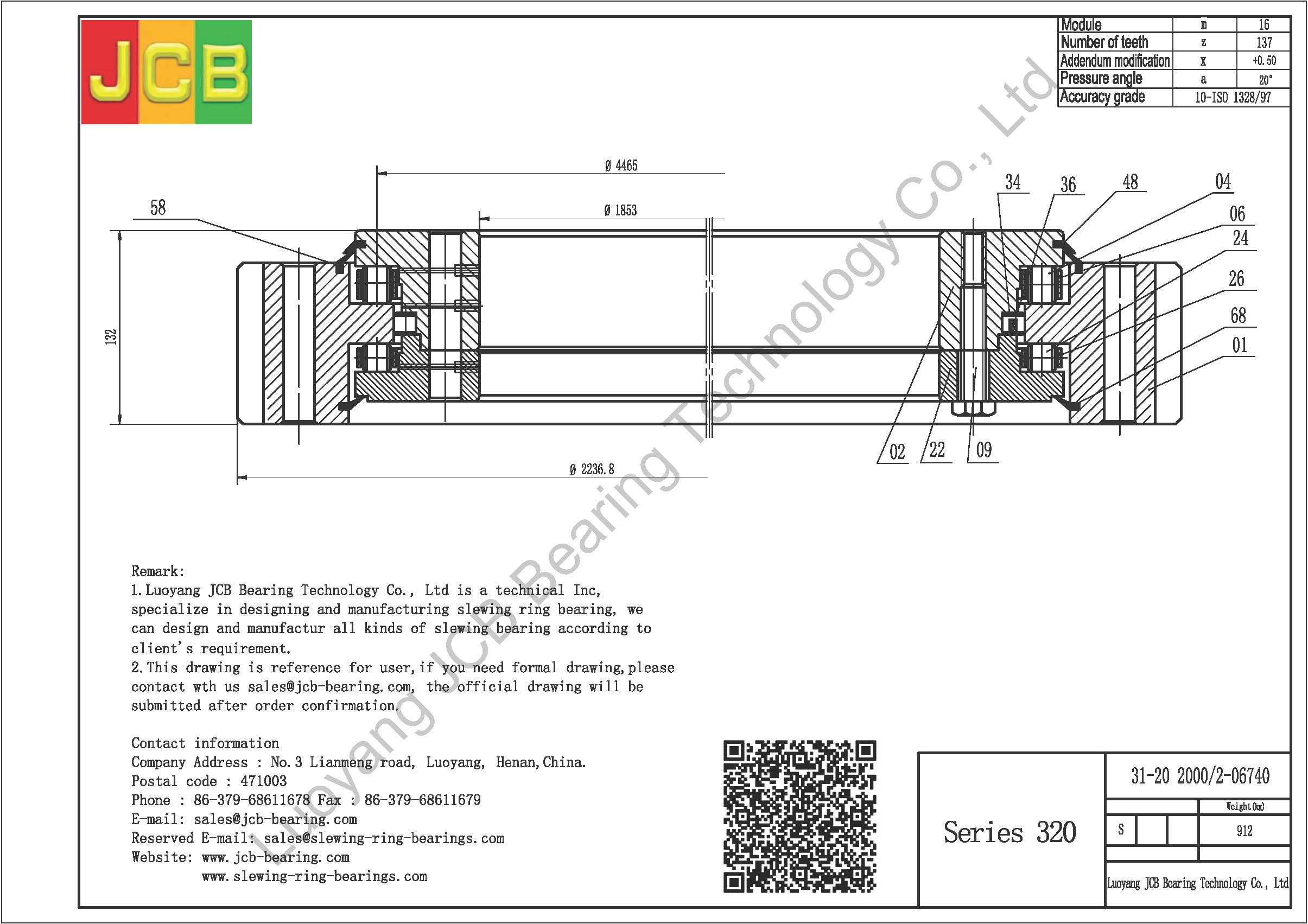 Introduction:We are Luoyang JCB Bearing Technology Company, working on industry of slewing ring bearing designing and manufacturing more than 30 years, based on this we accumulate a lot of design experiences and slewing ring bearing application experiences