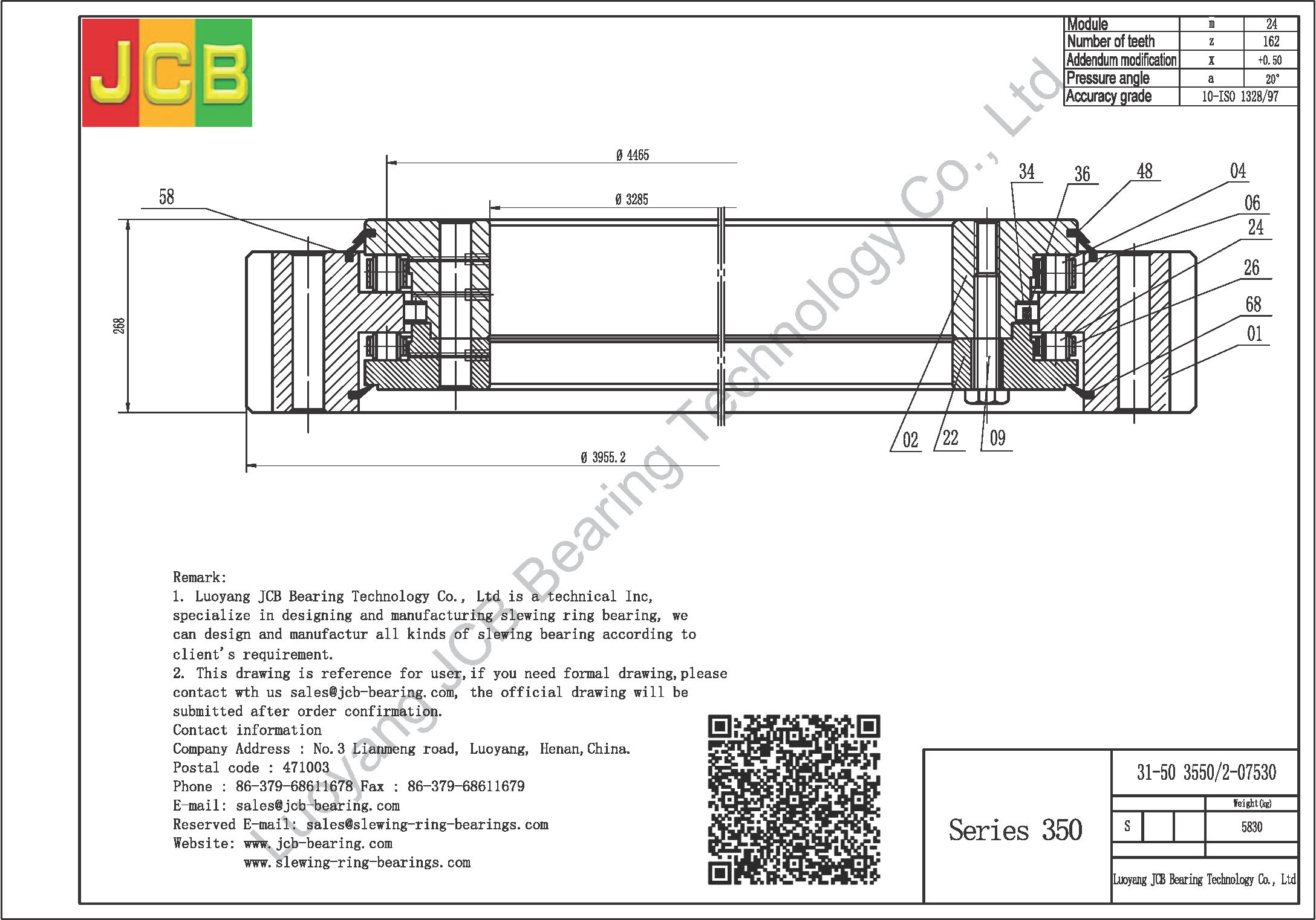 Introduction:We are Luoyang JCB Bearing Technology Company, working on industry of slewing ring bearing designing and manufacturing more than 30 years, based on this we accumulate a lot of design experiences and slewing ring bearing application experiences