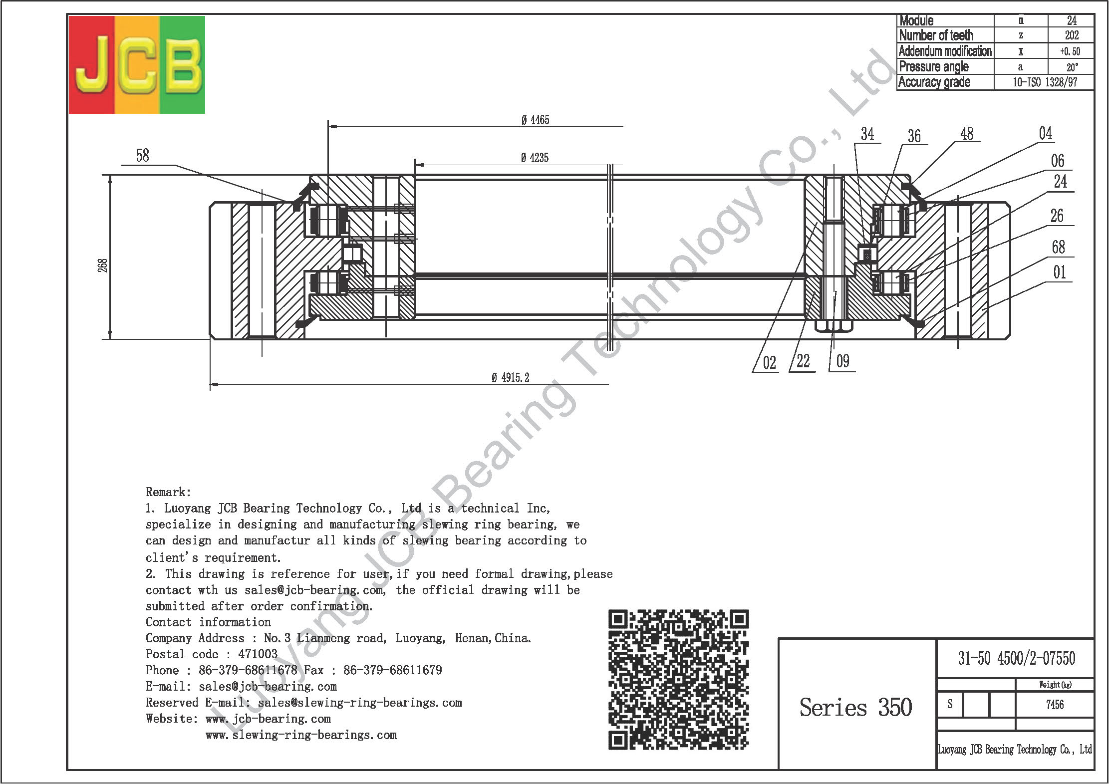 Introduction:We are Luoyang JCB Bearing Technology Company, working on industry of slewing ring bearing designing and manufacturing more than 30 years, based on this we accumulate a lot of design experiences and slewing ring bearing application experiences