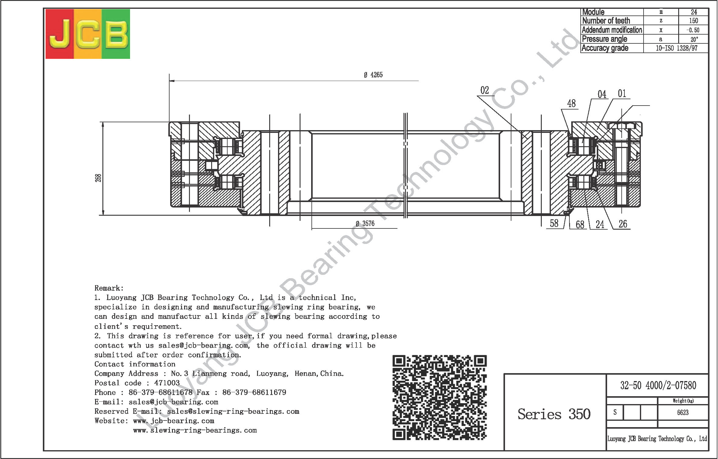 Introduction:We are Luoyang JCB Bearing Technology Company, working on industry of slewing ring bearing designing and manufacturing more than 30 years, based on this we accumulate a lot of design experiences and slewing ring bearing application experiences