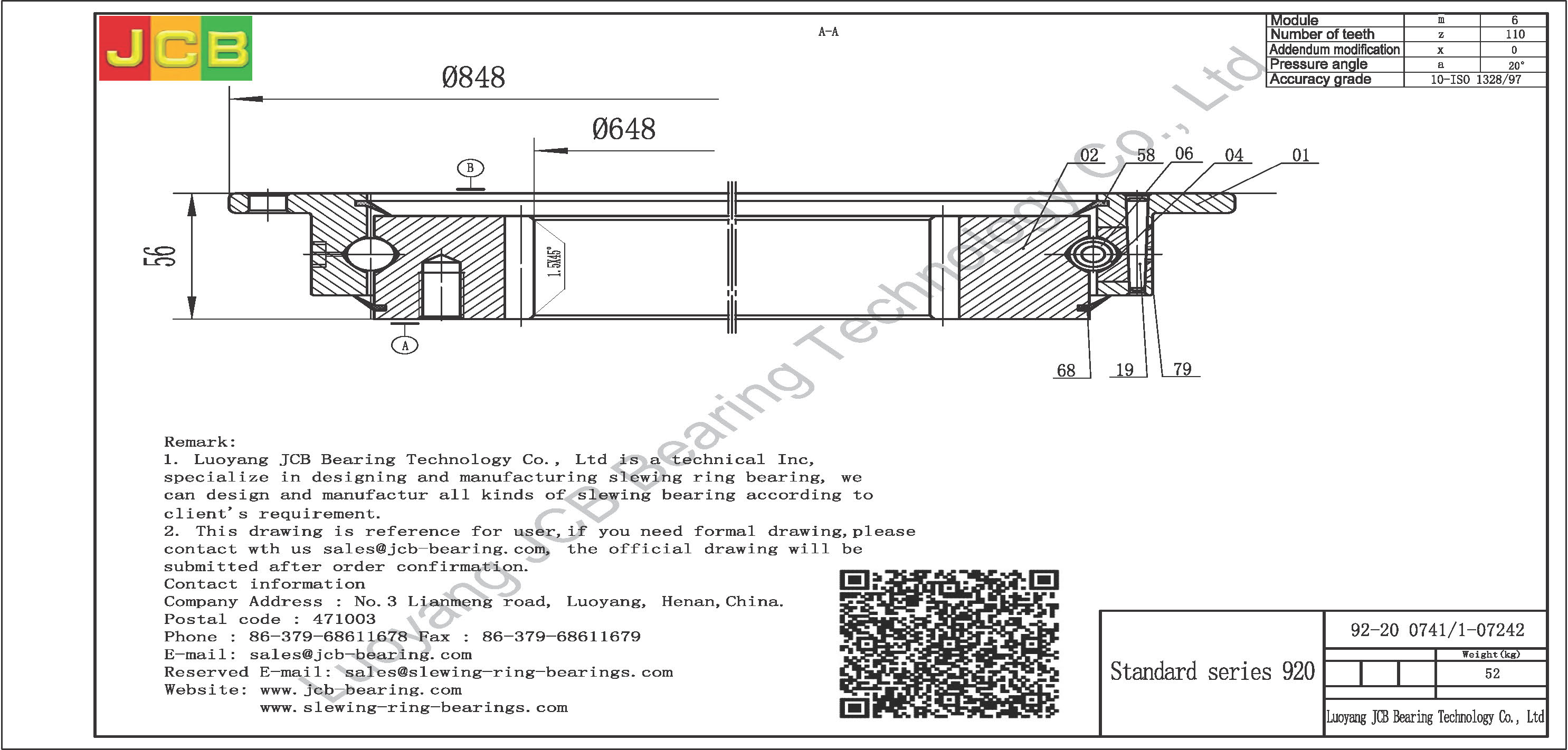 Introduction:We are Luoyang JCB Bearing Technology Company, working on industry of slewing ring bearing designing and manufacturing more than 30 years, based on this we accumulate a lot of design experiences and slewing ring bearing application experiences