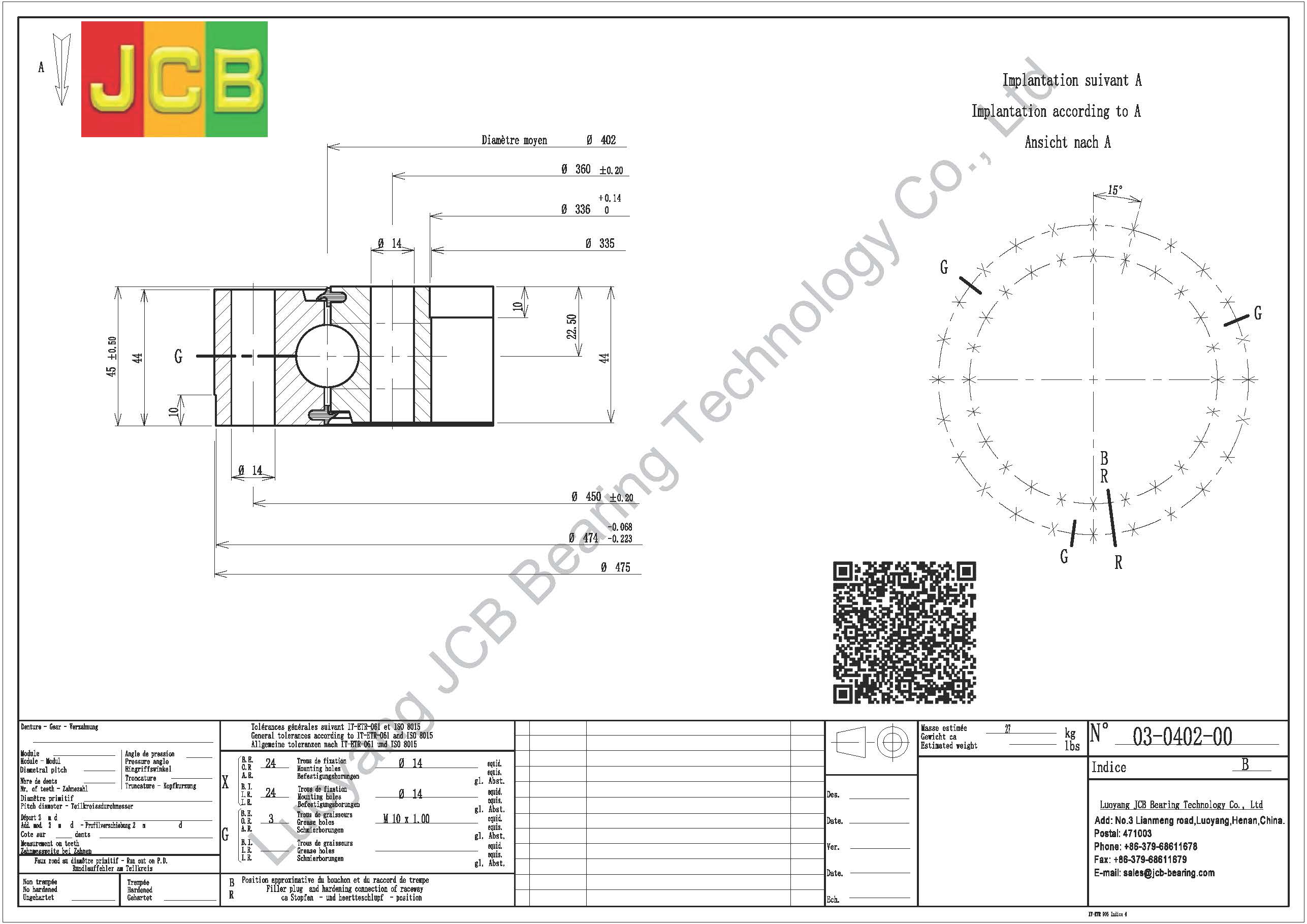 Introduction:We are Luoyang JCB Bearing Technology Company, working on industry of slewing ring bearing designing and manufacturing more than 30 years, based on this we accumulate a lot of design experiences and slewing ring bearing application experiences