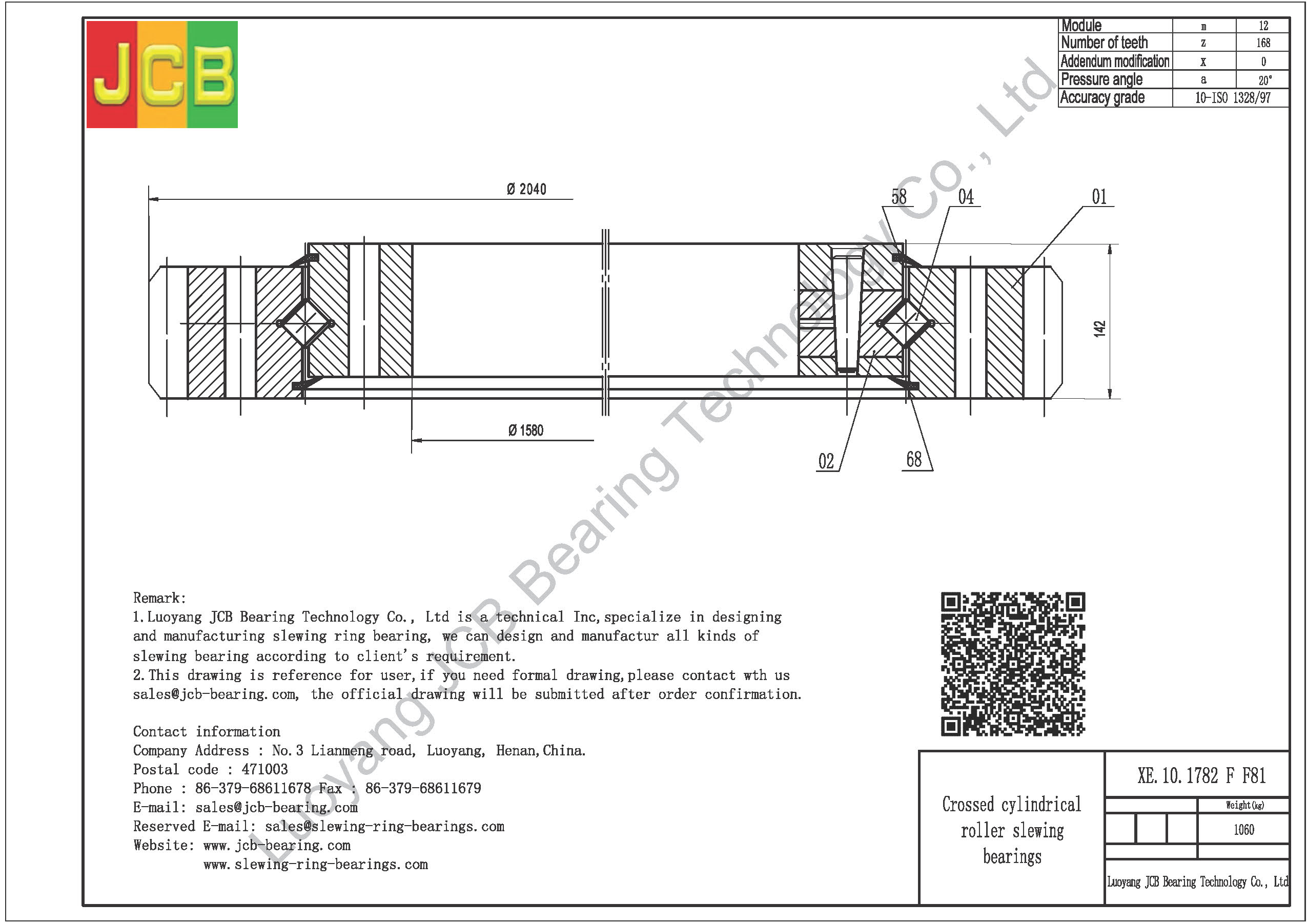 We are a professional manufacturer of slewing bearing XE.10.1782 F F81 rather than sales company of slewing bearing XE.10.1782 F F81. We not only provide high-quality products, but also provide customers with the most extensive pre-sales and after-sales services, as well as professional technical support.